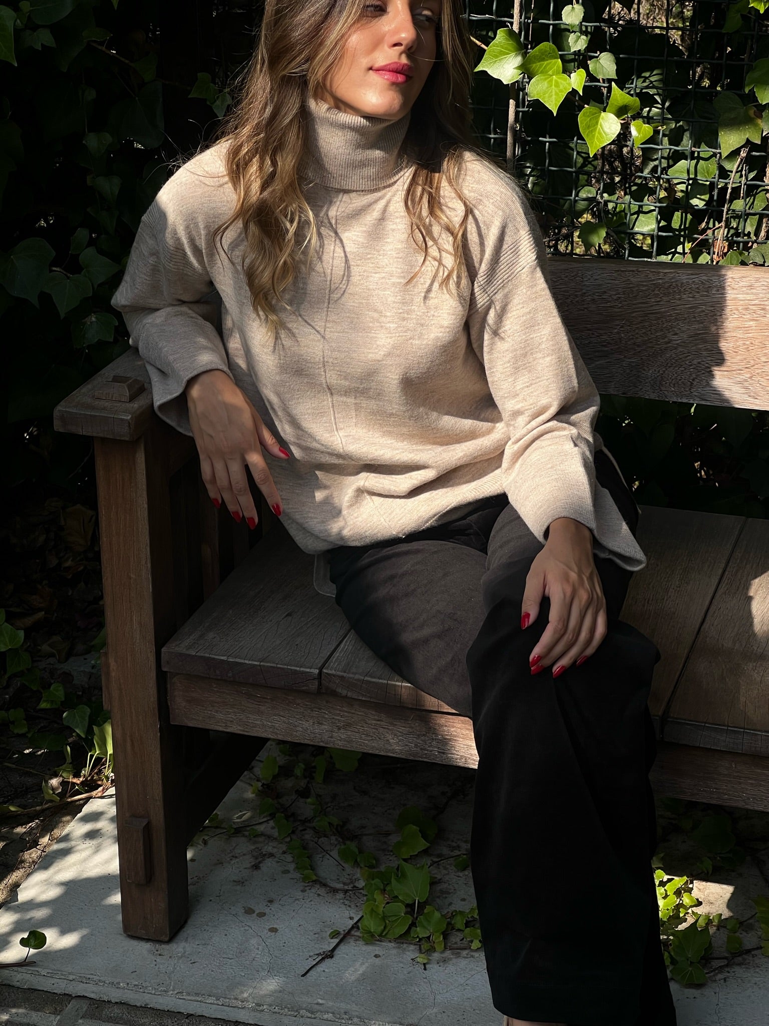 A cozy essential with timeless appeal. This turtleneck sweater is crafted from a soft, breathable knit that hugs gently without clinging. The relaxed fit, ribbed trims, and high neckline offer warmth and effortless style.
