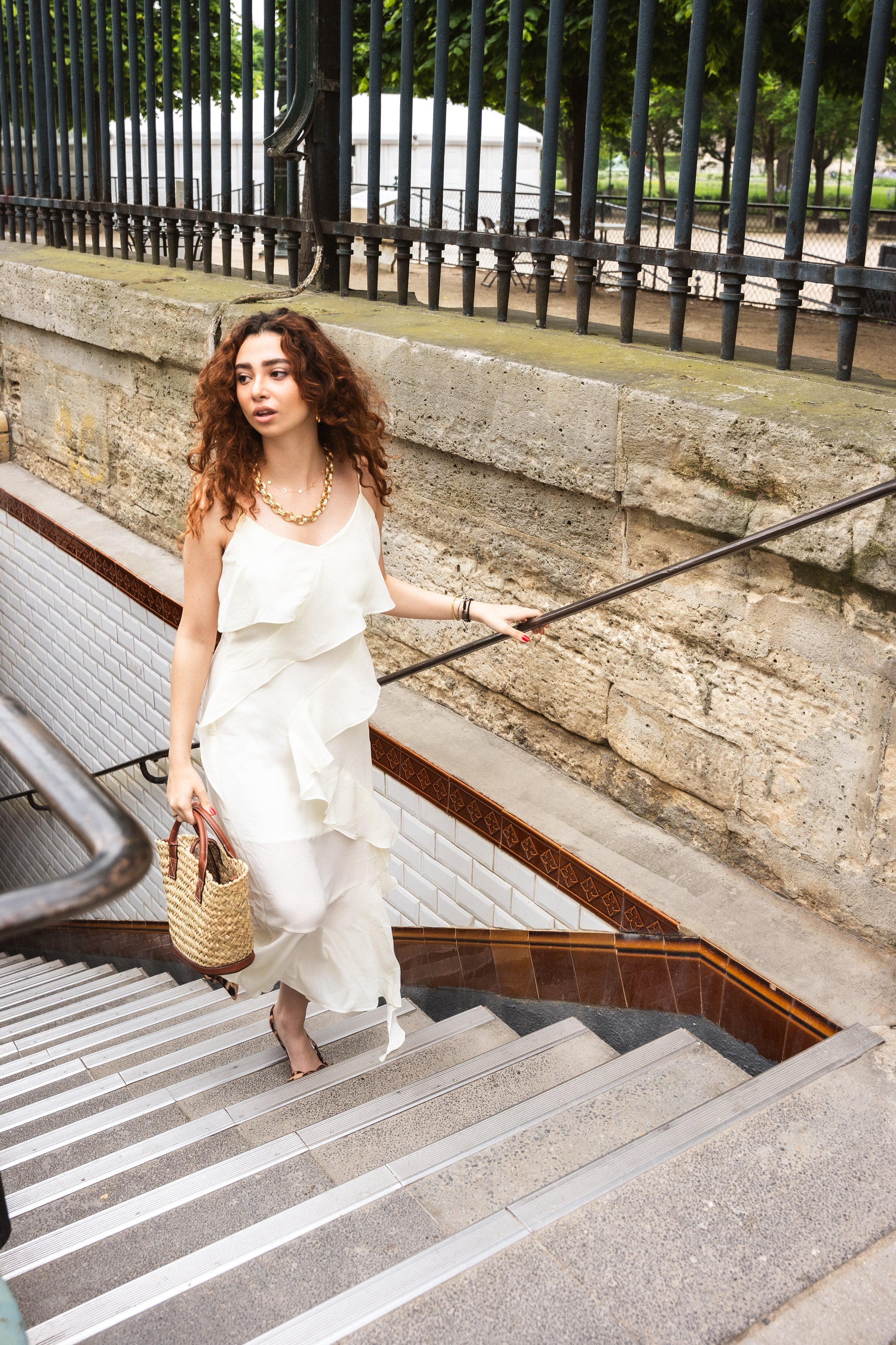 Featuring delicate ruffle detailing along the neckline and hem, it’s crafted from a lightweight, breathable fabric that drapes beautifully.